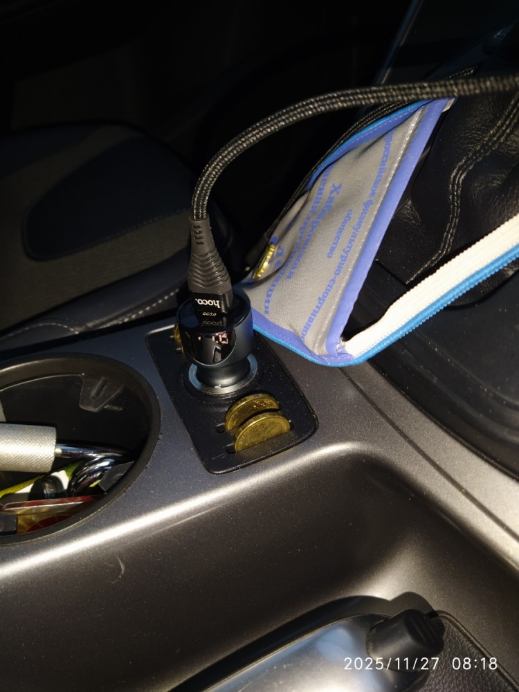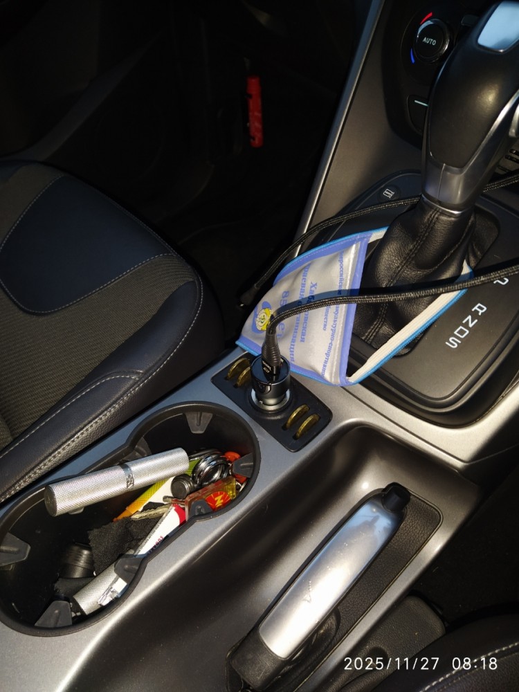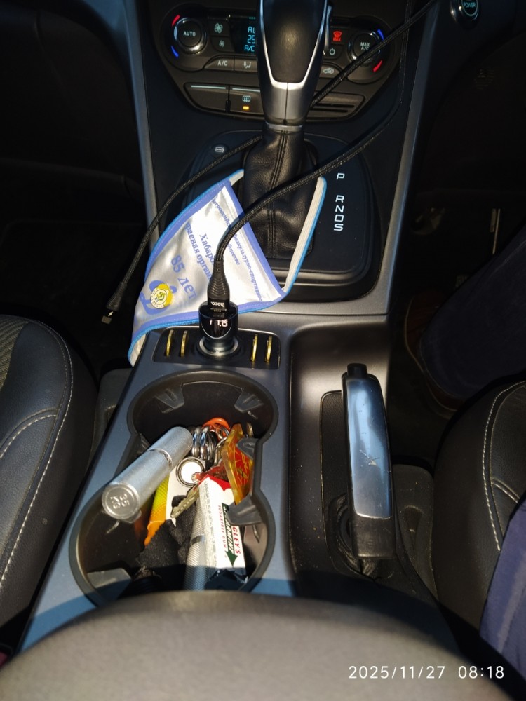 Большой цифровой дисплей показывает текущее напряжение автомобильного аккумулятора. Кроме того на нём отображаются параметры зарядки для подключённого смартфона: напряжение и ток