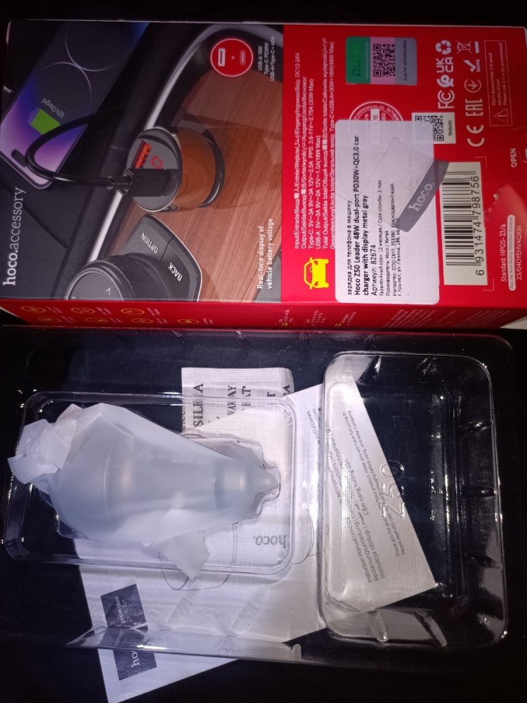 зарядка для телефона в машину Hoco Z50 Leader 48W dual-port PD30W+QC3.0 car charger with display metal gray