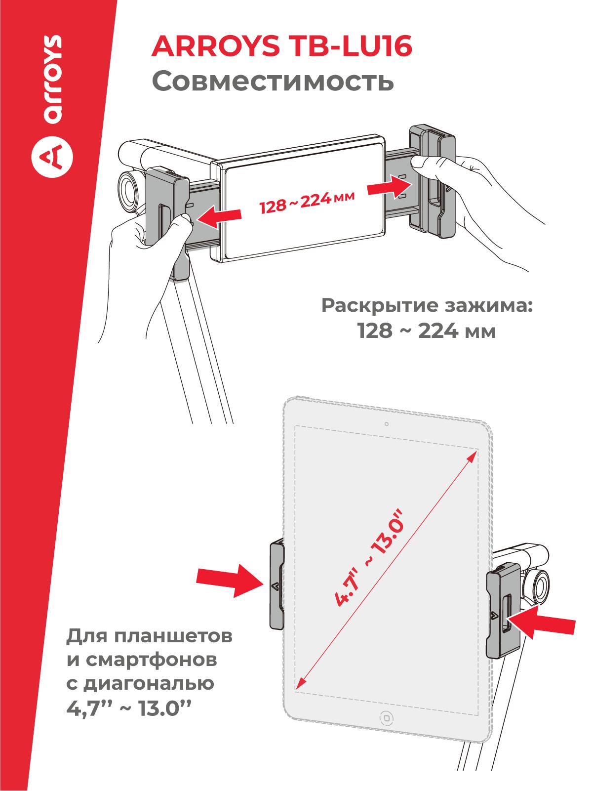 • Совместимо с устройствами с размером одной из сторон 130-220 мм