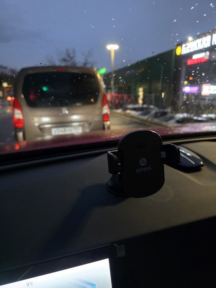 Автомобильный держатель Arroys Dash-MT2 крепится на лобовое стекло или приборную панель с помощью вакуумной присоски диаметром примерно 65 мм. Зажим смартфона автоматический. При установке в держатель корпус смартфона нажимает на кнопку и зажим закрывается автоматически. Для извлечения смартфона из держателя необходимо нажать кнопки сбоку. Все это делается очень удобно одной рукой. Если экран девайса широкий, то надо на кнопки надеть удлинительные колпачки. Держатель совместим со смартфонами с экраном шириной от 55 до 95. мм.