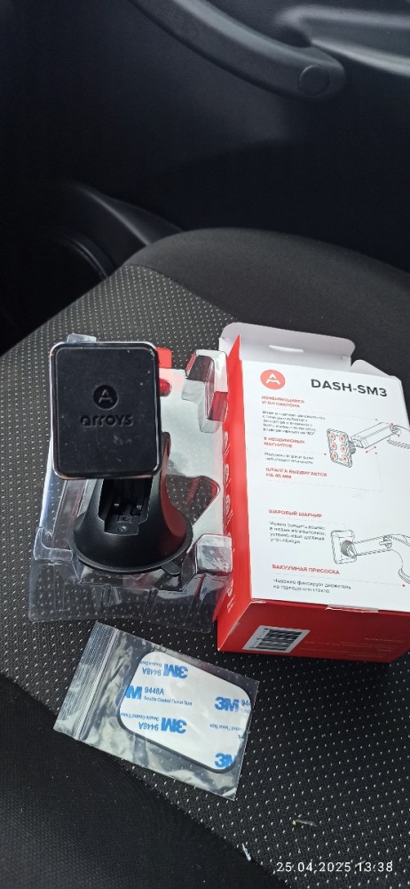 Вакуумная присоска предназначена для установки на лобовое стекло или приборную панель. Как правило, установка на лобовое стекло не вызывает затруднений и держатель держится на нем очень надежно. В случае с приборной панелью могут быть исключения, когда материал изготовления слишком мягкий или нет ровного места для установки. В этом случае можно приобрести дополнительную подставку Arroys Suction Pad. Она крепится на двухсторонний 3М скотч и уже на нее устанавливается держатель. Не забудьте обезжирить поверхность установки спиртовой салфеткой и не использовать подставку в течение 6 часов после монтажа.