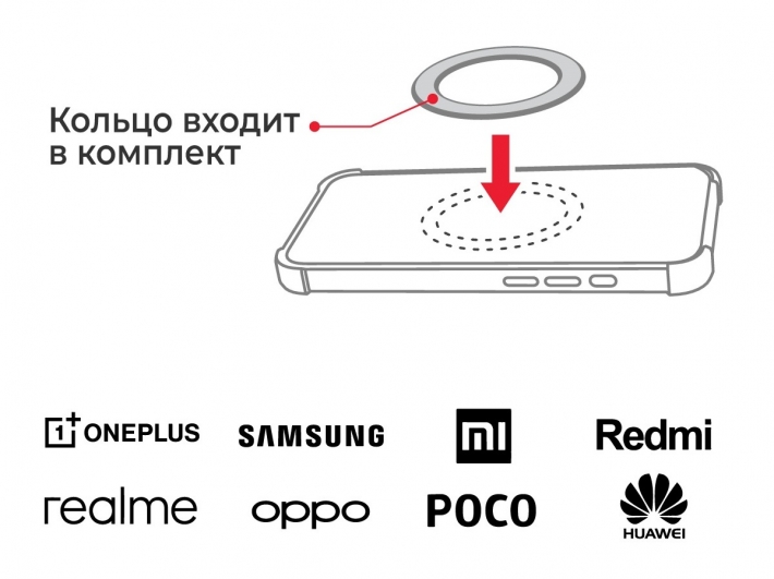 В комплект держателя входит круглая металлическая пластина, которая позволяет использовать держатель не только с iPhone или чехлами Magsafe, но и любыми другими телефонами. Она крепится на двухсторонний скотч на заднюю крышку телефона либо на тыльную часть чехла. Внимание! Мощности притяжения магнитов не хватает, чтобы использовать пластину под чехлом. Пластина облицована пластиком темного цвета, что улучшает не только внешний вид, но позволяет избежать царапин на предметах в сумке, если она используется для переноски телефона.