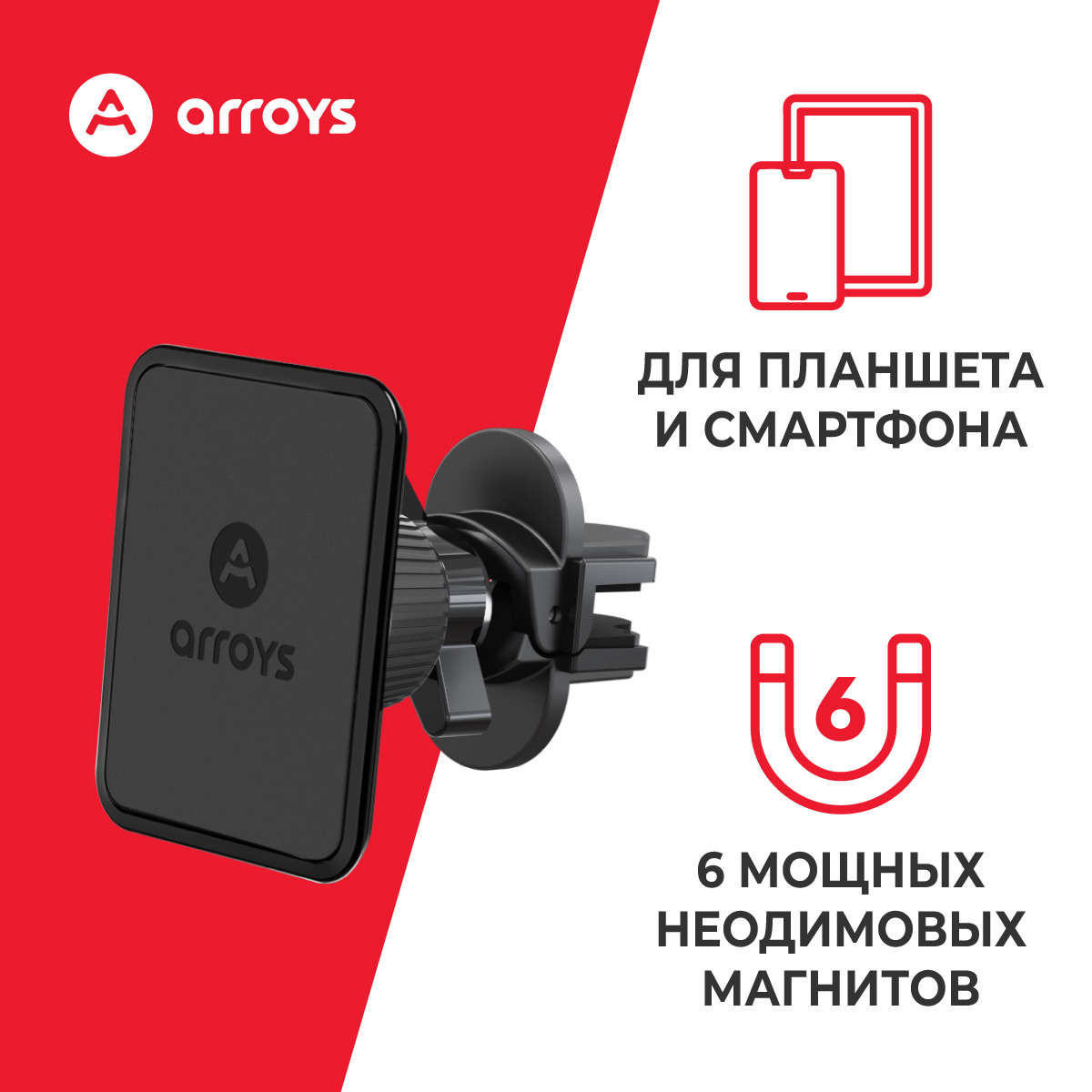 Автомобильный магнитный держатель для смартфонов с креплением в вентиляцию Arroys Vent One - очень компактный стильный аксессуар, который наверняка впишется в интерьер вашего авто. Он изготовлен из очень качественных материалов и это сразу ощущается, когда берешь его в руки.