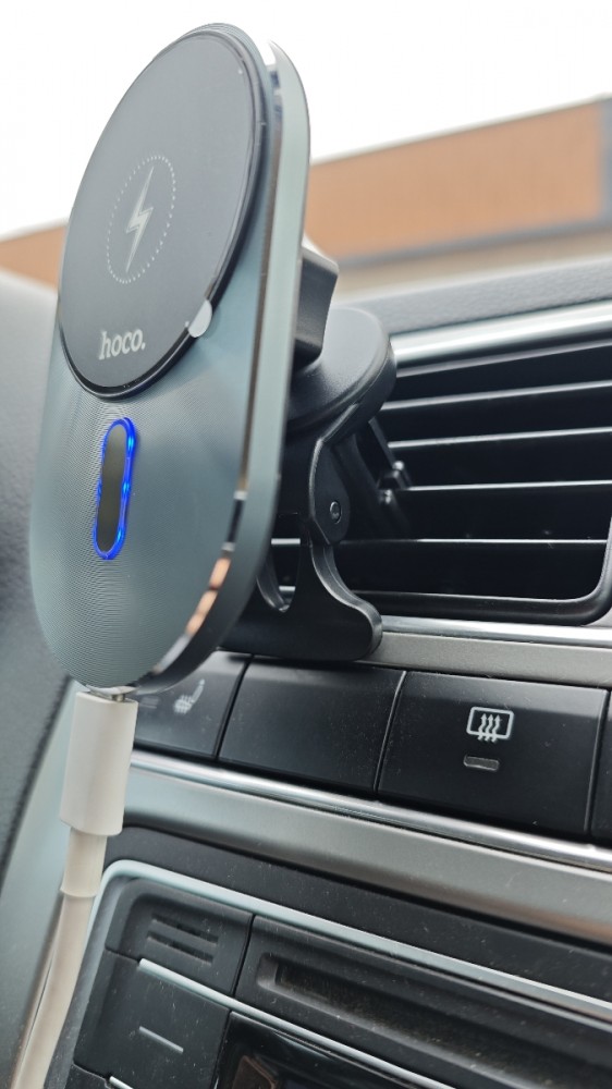 Hoco CA91 Magic magnetic wireless fast charging car holder - автомобильный магнитный держатель для телефона с беспроводной зарядкой. Специально разработан для серии iPhone 12 с технологией Magsafe*. Крепится к вентиляционной решётке
