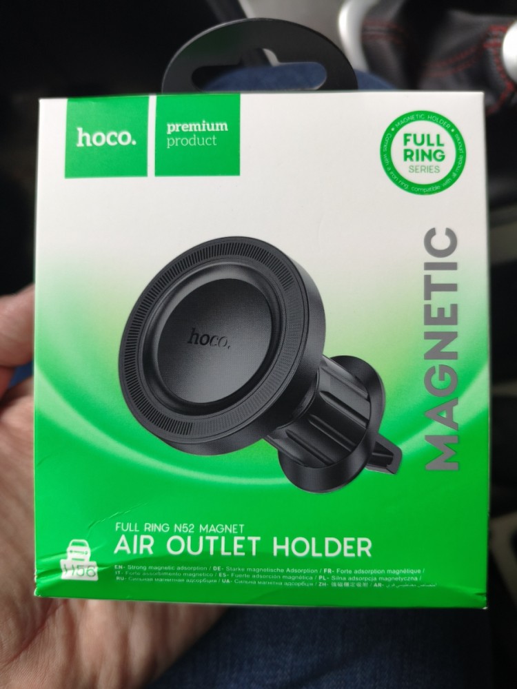Автомобильный магнитный держатель телефона Hoco H56 из термостойкого пластика и с металлическим крюком надёжно фиксируется за пластину дефлектора. Аксессуар остаётся на месте и не теряет телефон на кочках, лежачих полицейских и поворотах