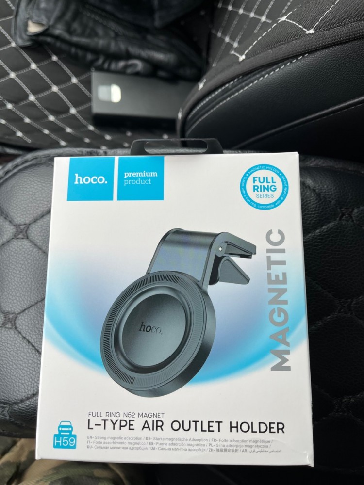 магнитный держатель MagSafe Hoco H59 Show ring magnetic car holder (L air outlet) black/metal gray